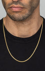 Discover DAZZIN’s sleekest 3mm Cuban Link Chain in 14k gold plating. Its finely coated 3mm links offer a refined touch of luxury ideal for any occasion, from workouts to evenings out. The 3mm Cuban Link Chain is versatile—wear it solo or layer it with our pendants for extra sophistication.