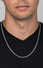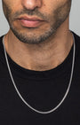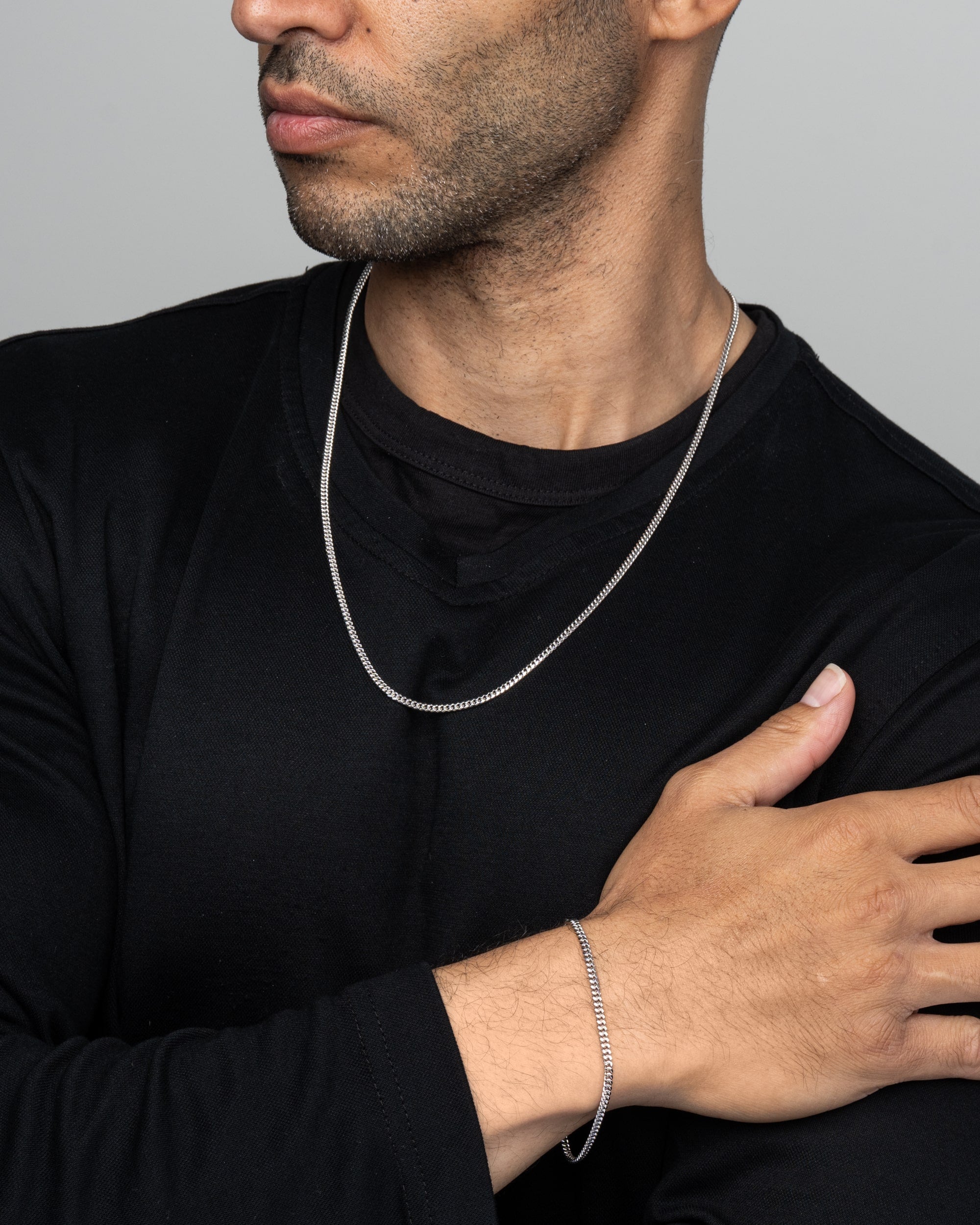 Discover DAZZIN’s sleekest 3mm Cuban Link Chain in rhodium plating. Featuring delicately coated 3mm links, this chain radiates a subtle luxury that’s perfect for the gym, daily wear, or nights out. The Silver Cuban Link pairs effortlessly with our pendants or can be stacked for a personalized, elegant look. For a classic twist, try our Gold Cuban Link Chain.
