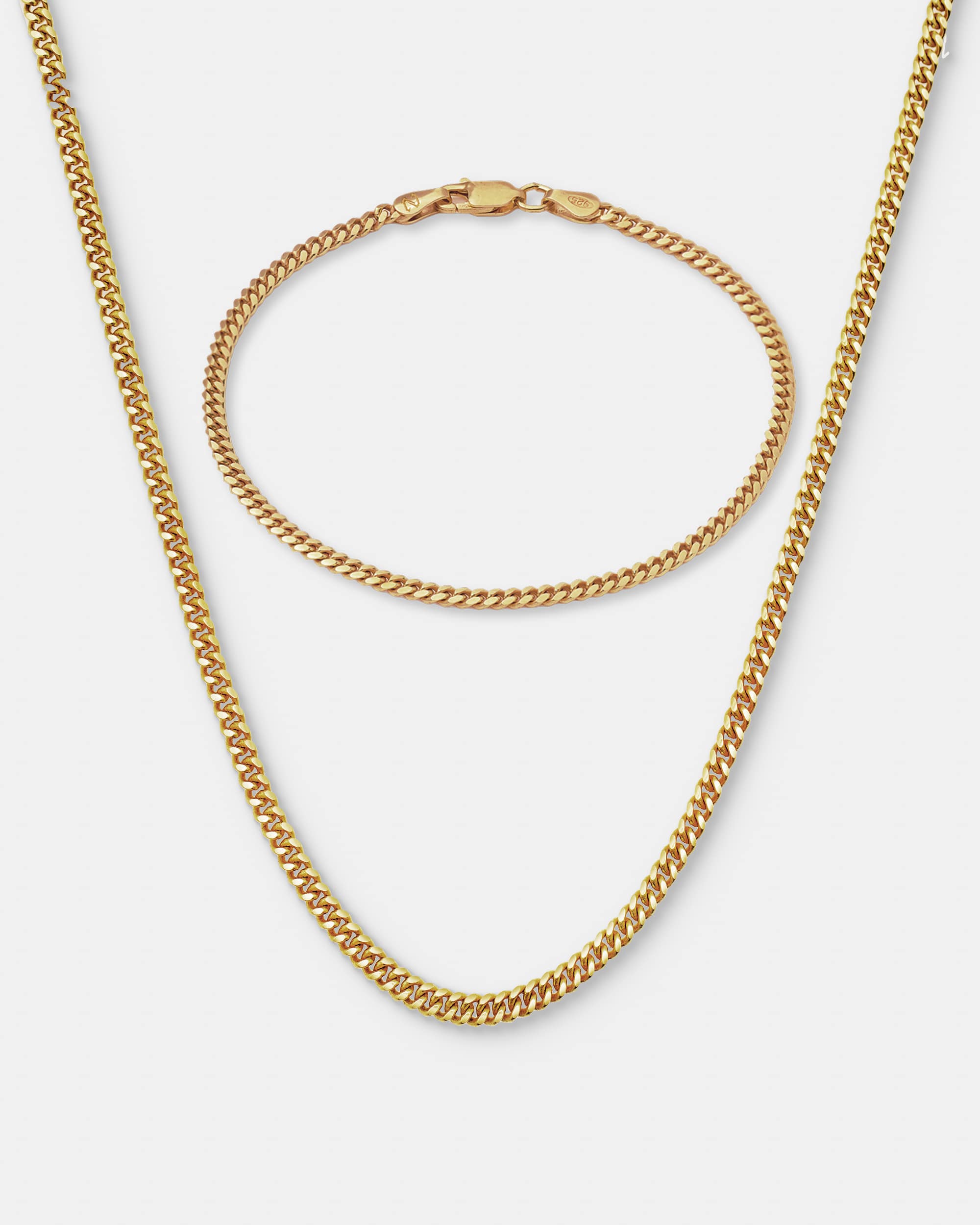 Made from 925 Sterling Silver, this Chain & Bracelet are both elegantly plated in 14k gold and treated with anti-tarnish coating, ensuring lasting shine and timeless style.
