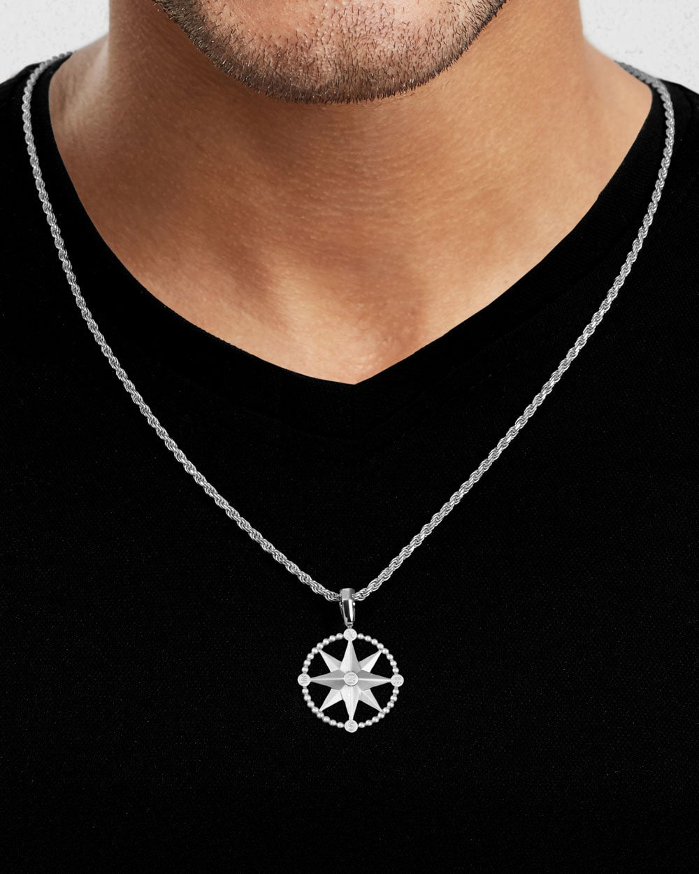 The Silver North Star Compass Pendant shines with navigational elegance, its polished surfaces reflecting light like a guiding beacon. Expertly crafted for daily wear, this Silver North Star Compass Pendant combines wayfinding symbolism with ergonomic comfort, resting lightly as your personal talisman. For a touch of luxury, explore our Gold North Star Compass Pendant.