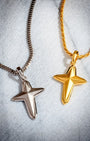 The Gold North Star Cross Pendant shines in a radiant golden design. This Gold North Star Cross Pendant offers guidance and timeless style, effortlessly elevating both everyday and special occasion looks.
