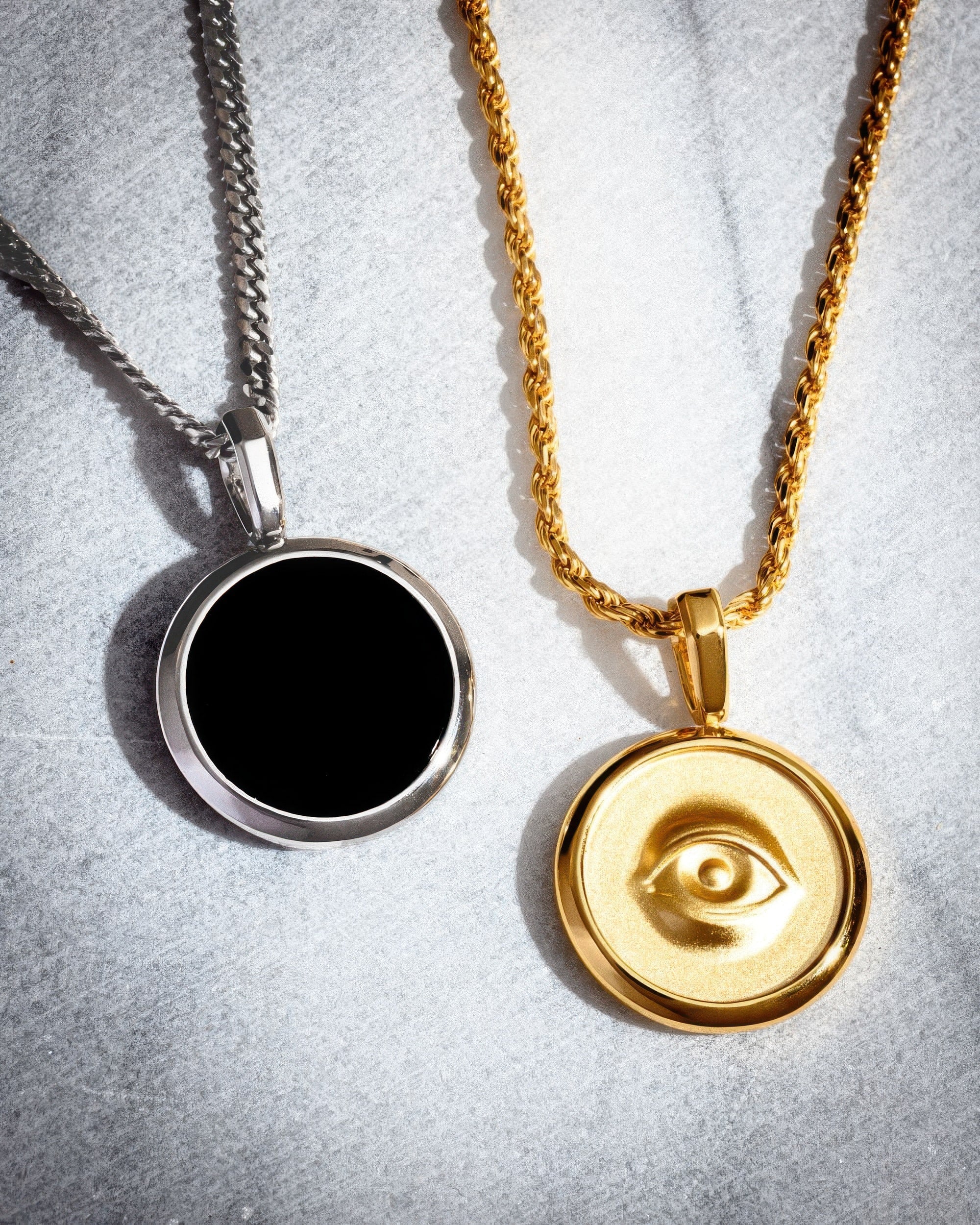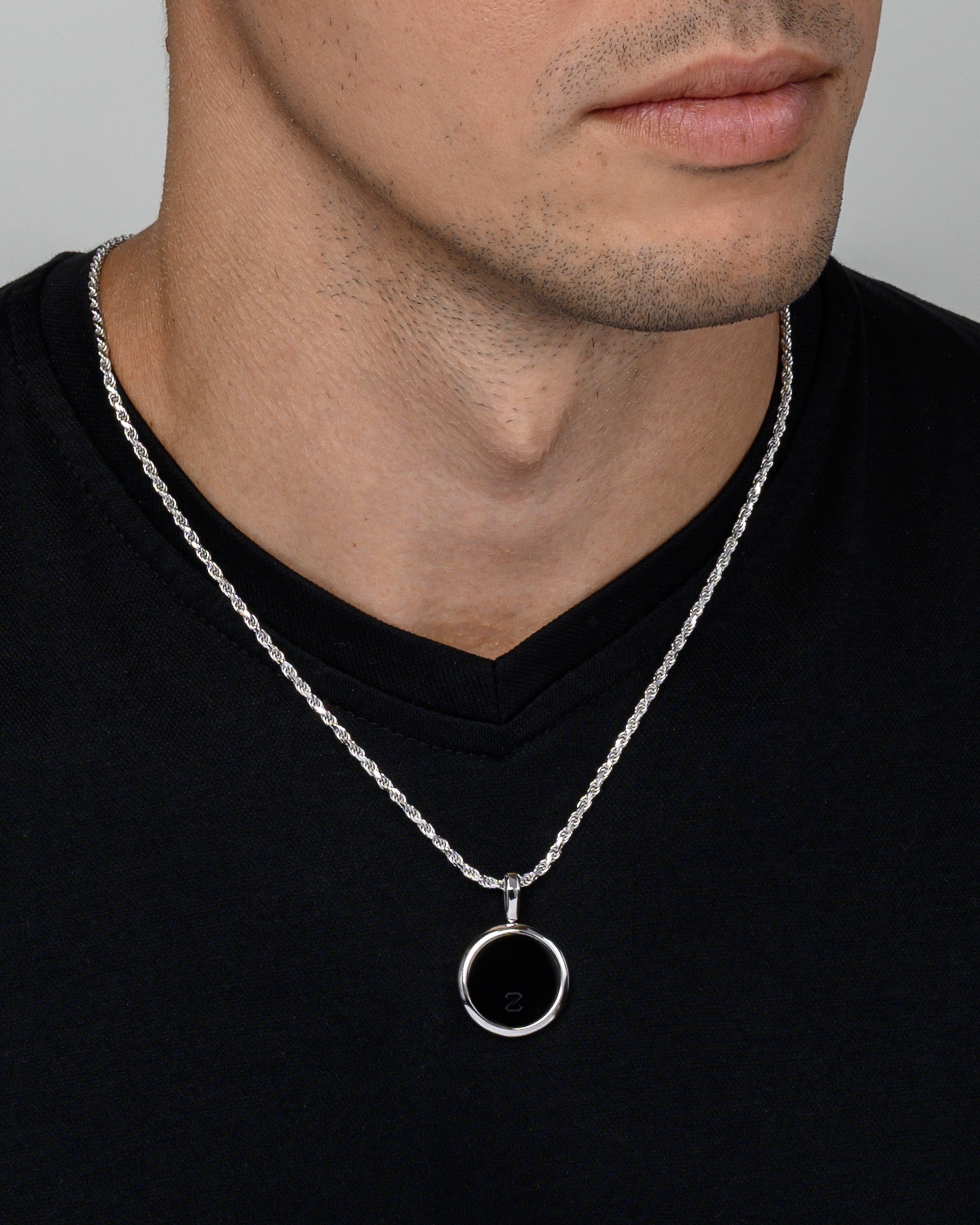 The Silver Onyx Providence Circle Pendant embodies eternal elegance with its polished silver band framing a glossy black onyx disc. This Silver Onyx Providence Circle Pendant merges celestial symbolism with minimalist style, creating perfect harmony between spiritual meaning and modern design. Elevate your look with our Gold Onyx Providence Circle Pendant.