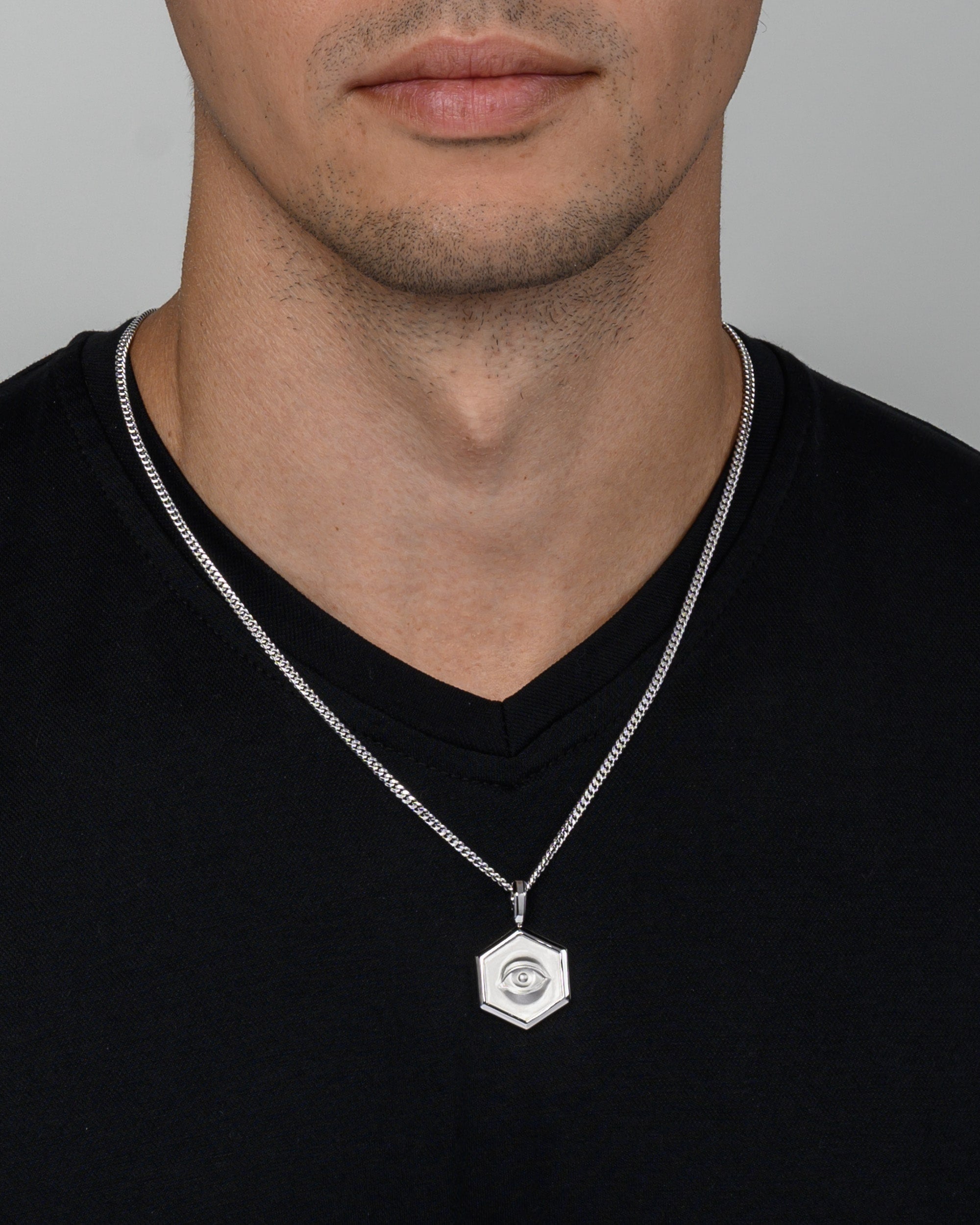 The Silver Onyx Providence Hexagon Pendant commands attention with its six-sided silver frame encircling a lustrous black onyx center. This Silver Onyx Providence Hexagon Pendant blends geometric precision with mystical allure, creating a bold statement for modern spiritualists. For a golden twist, try our Gold Onyx Providence Hexagon Pendant.