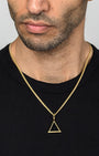 The Gold Onyx Providence Triangle Pendant radiates sacred geometry with its warm golden frame embracing a deep onyx triangle. This Gold Onyx Providence Triangle Pendant merges ancient symbolism with contemporary luxury, offering powerful style with meaningful depth.