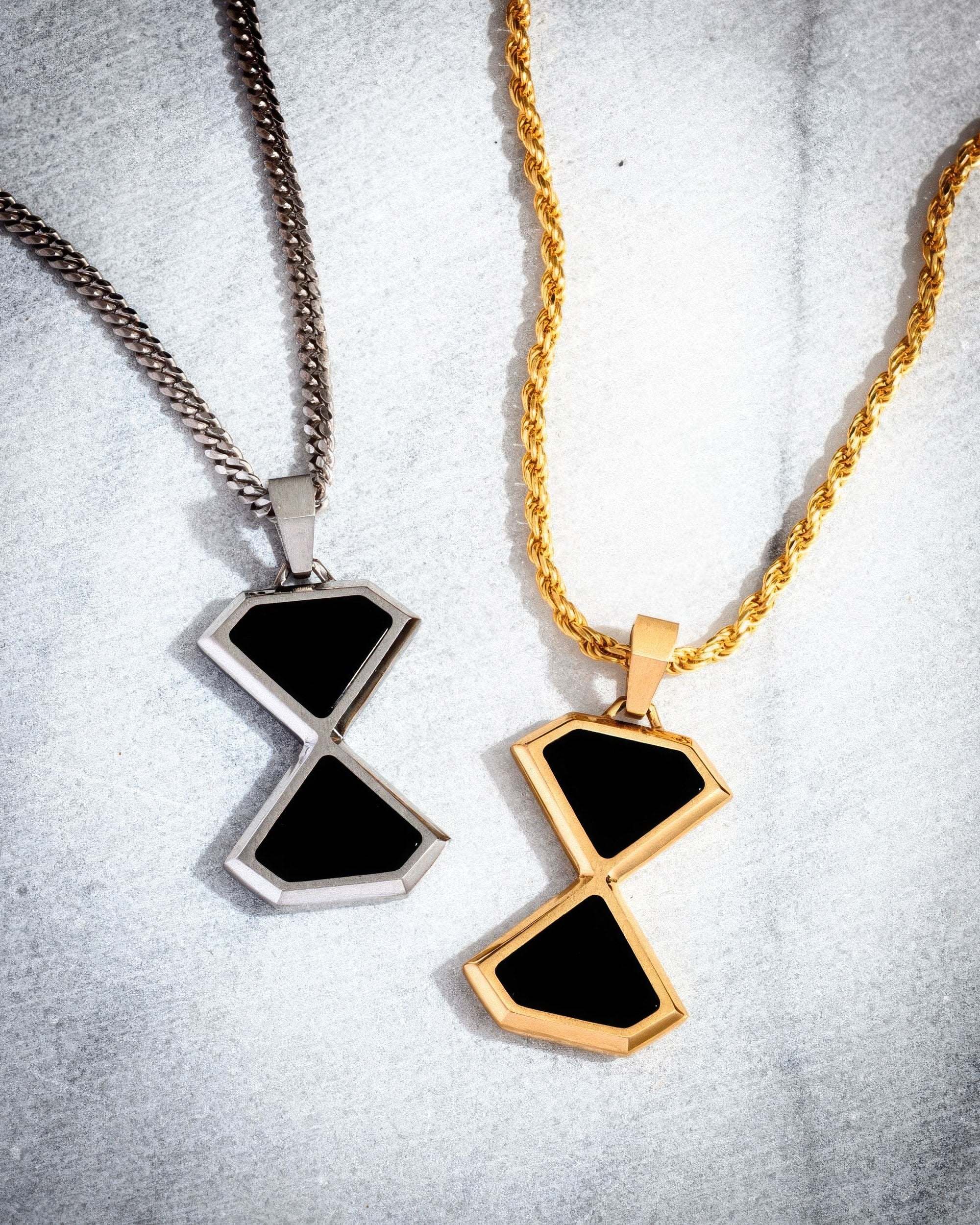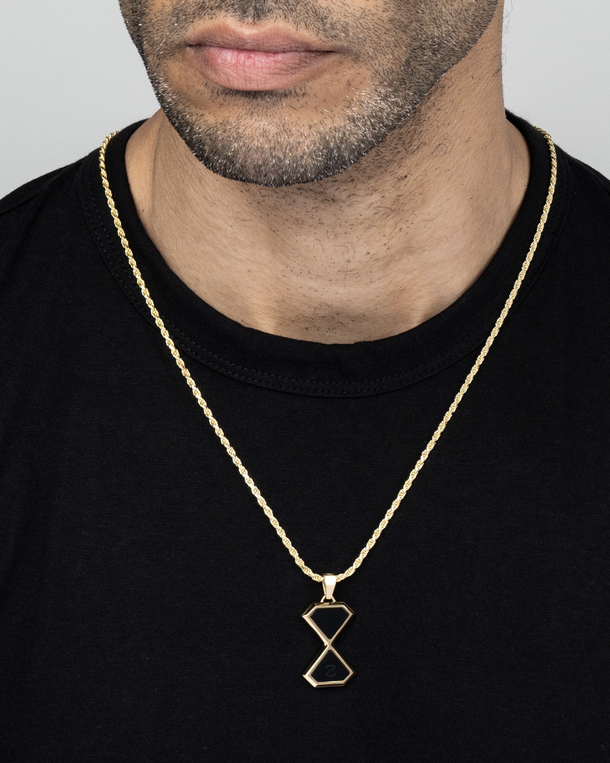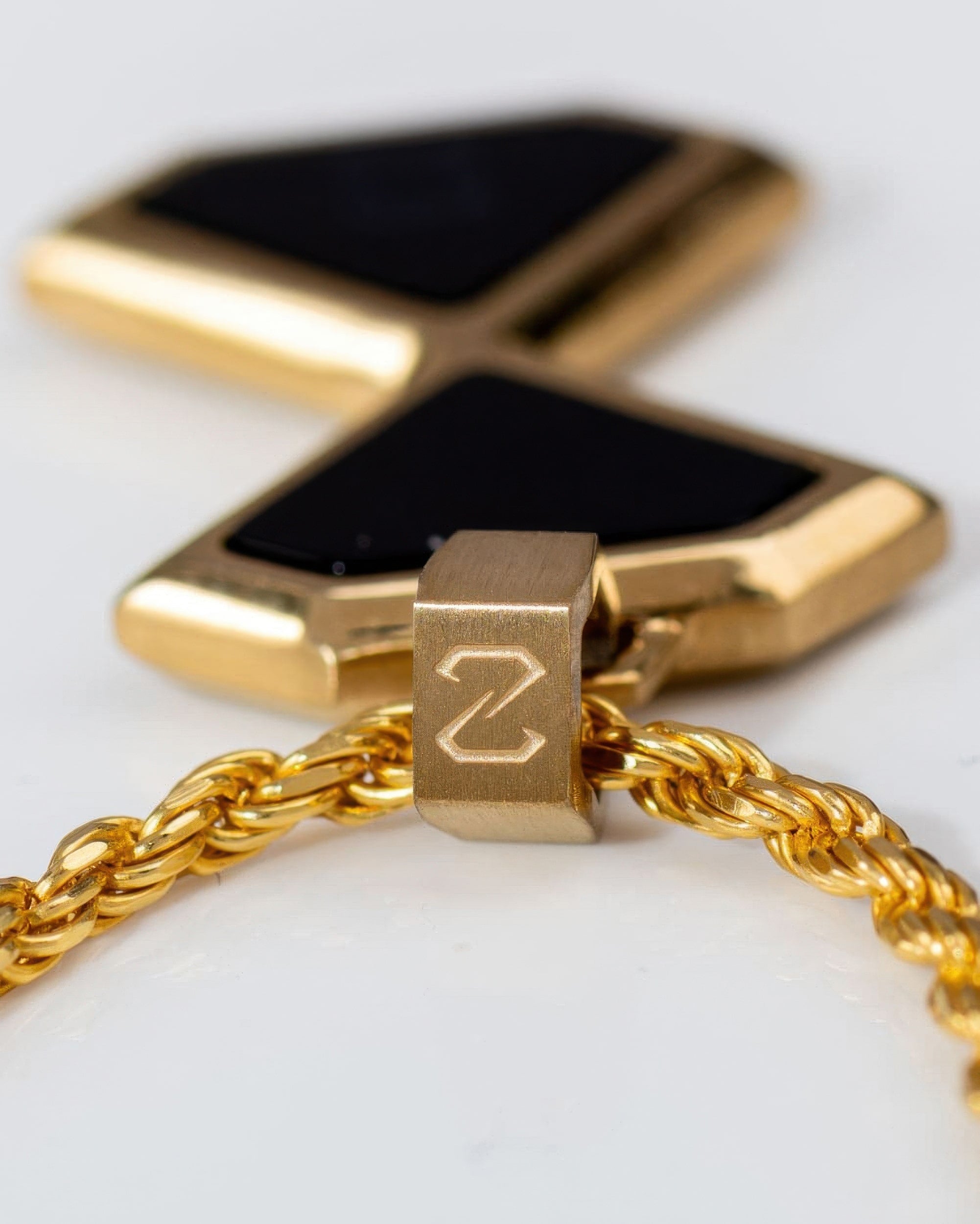 The Gold Onyx Reflect Tag Pendant shines with a warm golden glow, its polished surface highlighting the rich black onyx stone. This Gold Onyx Reflect Tag Pendant adds refined elegance to any look, effortlessly transitioning from casual to formal wear.