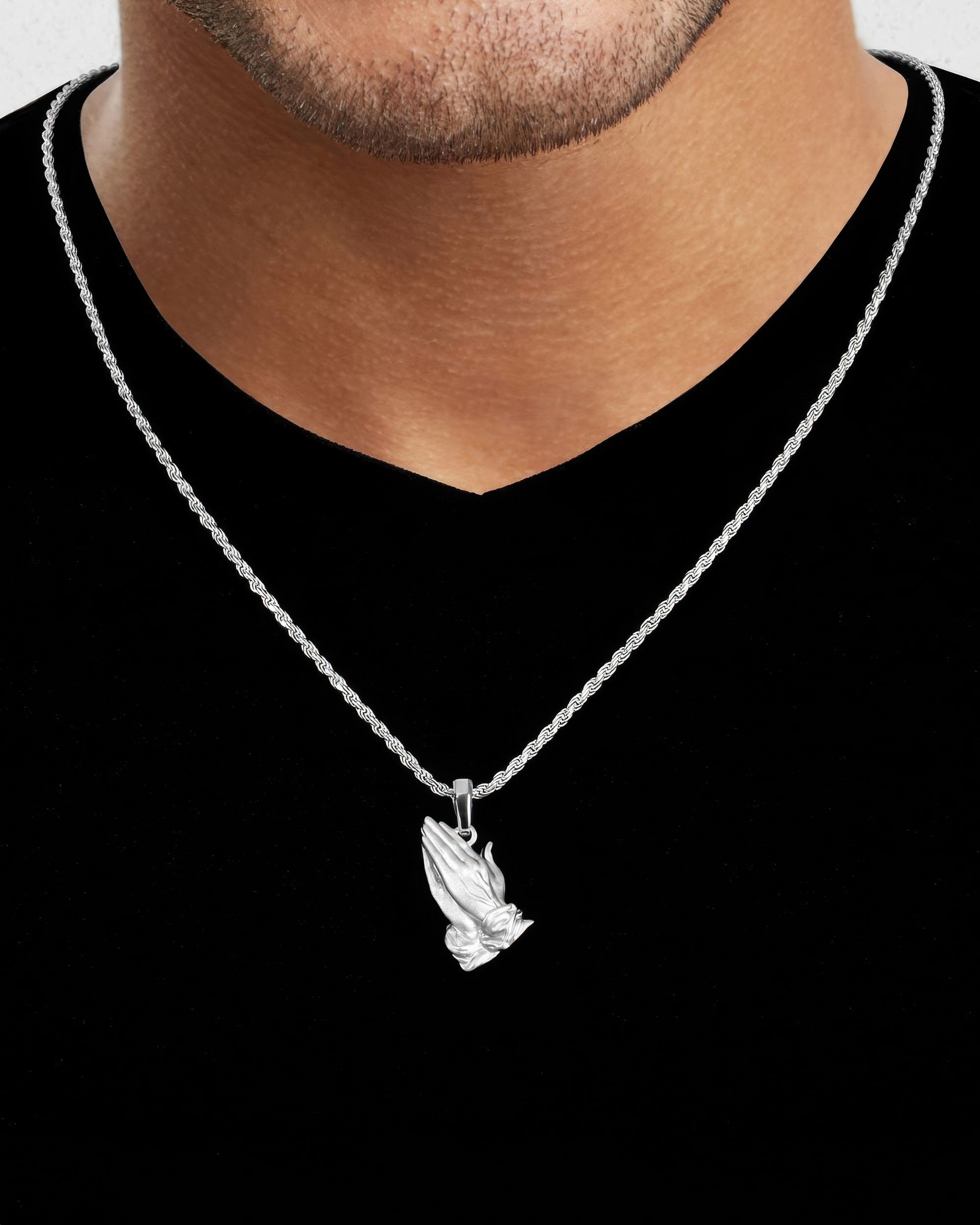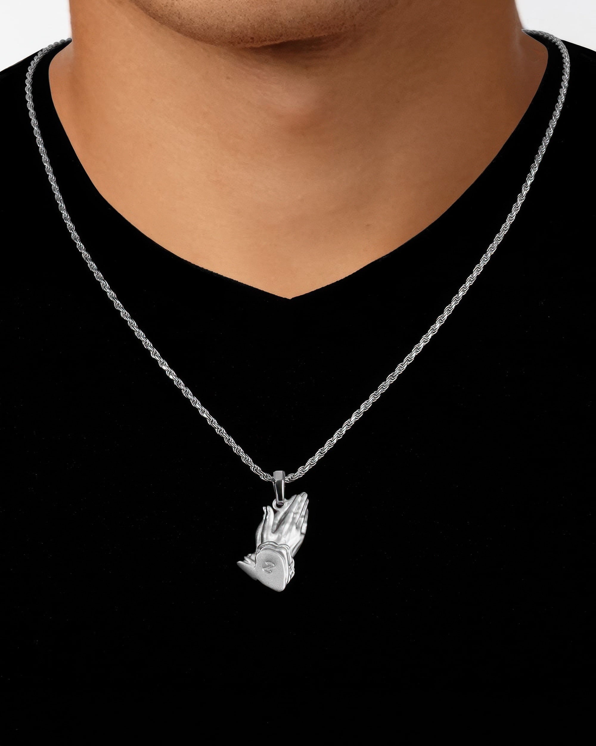 The Silver Pray Hands Pendant shines with sincerity, its polished surfaces reflect with every movement. Expertly crafted for meaningful wear, this Silver Pray Hands Pendant combines modern design with everyday comfort, resting gently as a constant reminder of what matters most. For a classic twist, try our Gold Pray Hands Pendant.