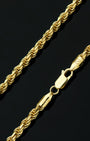 The 4mm Gold Rope Chain features precisely diamond-cut links that reflect light beautifully. Crafted from pure 925 sterling silver and plated with 14k gold, the Gold Rope Chain offers fade-resistant durability and enduring luster, ensuring you wear it with lasting assurance.