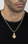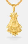 The Gold Saint Mary Pendant radiates timeless devotion with its warm golden finish and silhouette. This Gold Saint Mary Pendant offers elegance, blending seamlessly with both delicate chains and bold statement necklaces for personal expression.