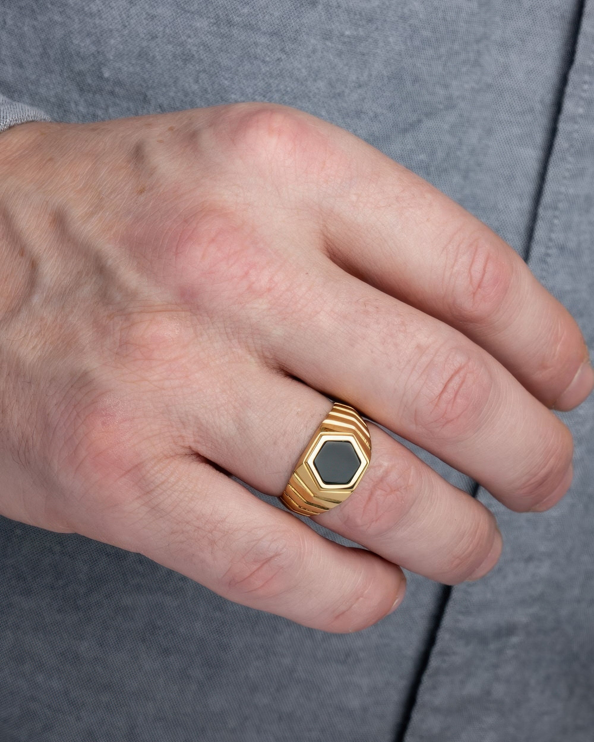 The Gold Signet Ridge Ring commands attention with its bold, hammered gold texture, creating striking light play with every movement. A modern twist on a heritage design, this ridged gold ring delivers rugged sophistication for the discerning wearer. Claim this eye catching piece, a conversation starting accessory that only grows more distinctive with time.
